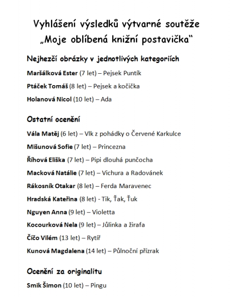 Výtvarná soutěž „Moje oblíbená knižní postavička“