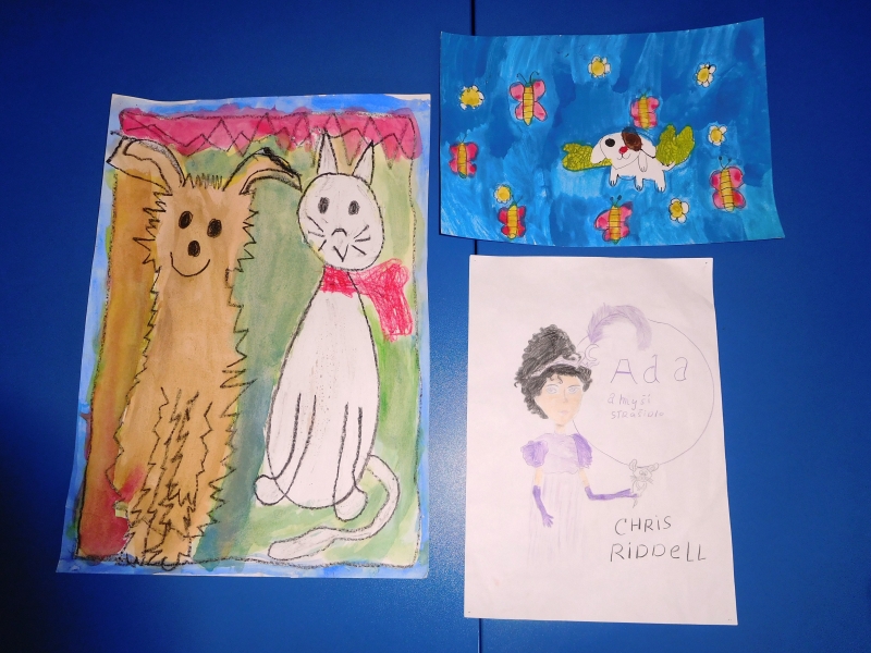 Nejlepší tři obrázky : Maršálková Ester – Pejsek Puntík (vpravo nahoře), Ptáček Tomáš – Pejsek a kočička (vlevo) a Holanová Nicol - Ada (vpravo dole)
