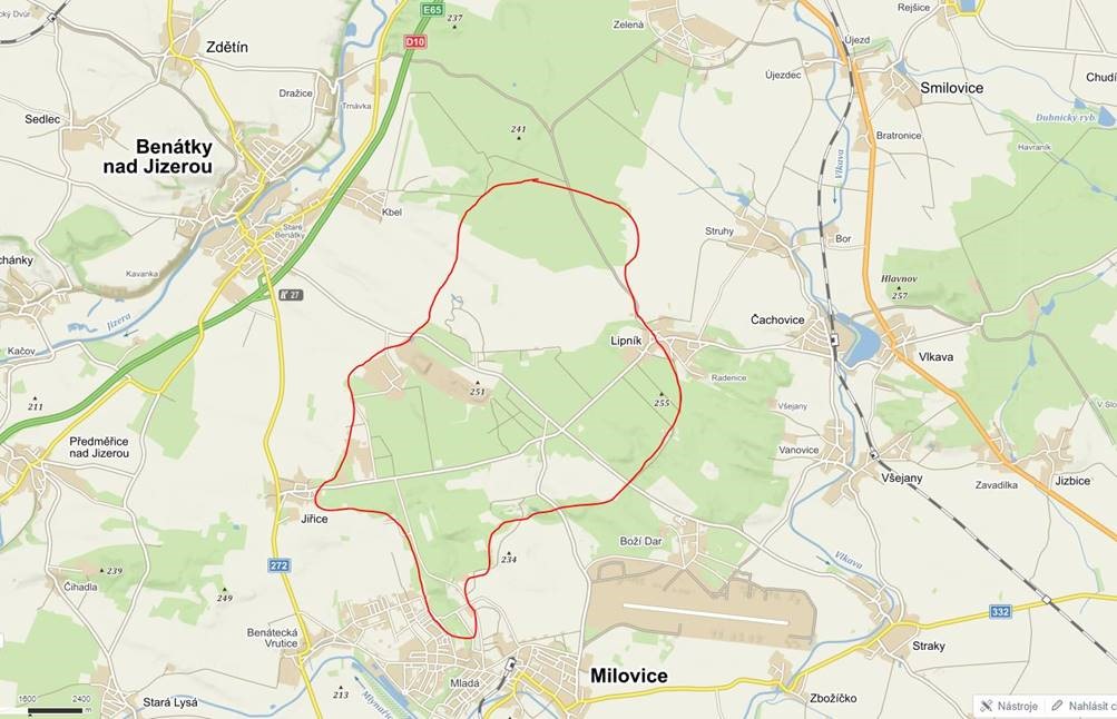 Vojenské lesy a statky ČR, Lesní správa Lipník, prosí občany, aby ve čtvrtek dne 23.11.2017 v době od 08 – 17 hodin omezili svůj pohyb v lesních porostech mezi obcemi Lipník – Benátky – Jiřice – Milovice – Všejany z důvodů konání lovecké akce na černou zvěř a zvýšené možnosti nebezpečí úrazu. mapa oblasti