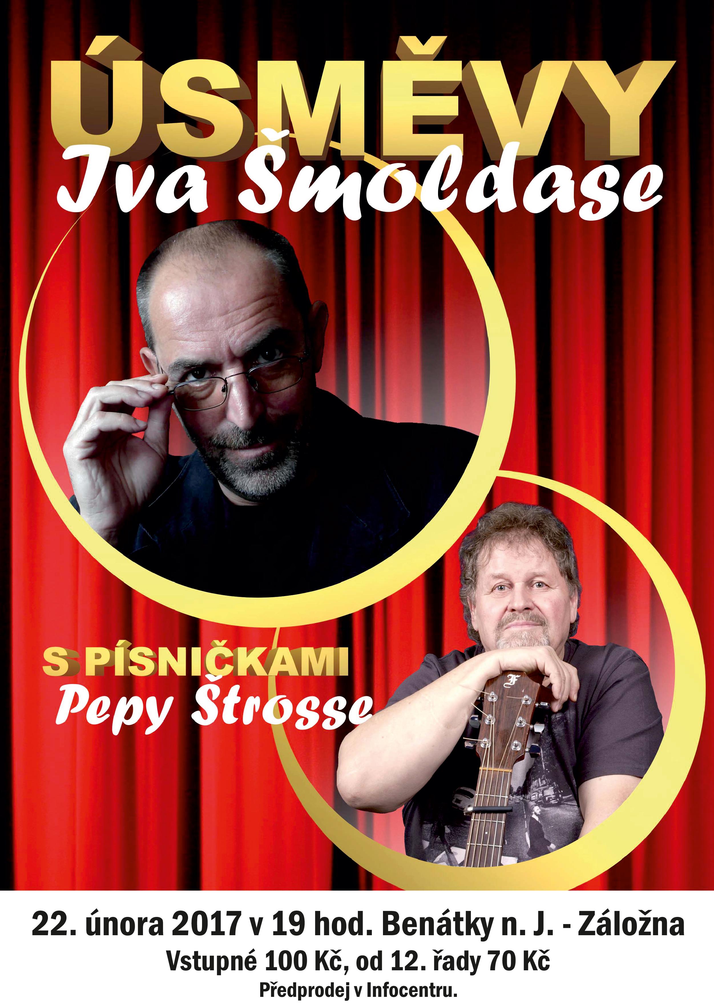 Dne 22.2.2017 vystoupí v kulturním sále Záložna známý glosátor Ivo Šmoldas v doprovodu swingujícího poety Pepy Štrosse. Představení začíná v 19:00 hodin. Předprodej vstupenek od 8.2.2017 v Infocentru. Plakát zde