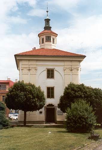 Hranolovitá stavba s bohatě členěnými nárožními pilastry a střechou zakončenou osmihrannou lucernou s věžičkou byla postavena ve 20. letech 18. století uprostřed benáteckého náměstí hrabětem Ignácem Zikmundem z Klenové. Náboženským účelům sloužila pouze do roku 1783, kdy byla, v souladu s reformami císaře Josefa II., odsvěcena a zrušena. V roce 1794 chátrající budovu koupil benátecký měšťan Ludvík Černý a daroval ji městu. Kaple byla poté zásadně přestavěna, vnitřní prostor byl rozdělen na přízemí a dvě patra a městský magistrát zde zřídil kanceláře. Také vnější podoba byla pozměněna. Původní velká okna byla zazděna a nahrazena menšími okny v jednotlivých patrech. Přestavěn byl rovněž vchod. Od roku 1795 byla budova bývalé kaple používána jako sídlo radnice, neboť po požáru roku 1769, kdy dosavadní radnice vyhořela, museli benátečtí radní a městští úředníci úřadovat v soukromých domech. Potřebám města sloužila adaptovaná kaple 100 let. V roce 1896 se městský úřad přestěhoval do nových prostor, bývalá radnice byla nejprve pronajata Občanské záložně, po jejím vystěhování do vlastní budovy byly prostory v patrech upraveny na byty a v přízemí byla městská strážnice spolu s obecní váhou.