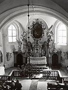 Další zásadní stavební úpravy kostela proběhly na přelomu 17. a 18. století, kdy byla přistavěna barokní věž s ochozem a celá chrámová loď byla poněkud prodloužena. Vnitřní vybavení kostela pochází především z poloviny 18. století. Ve zdivu kostela se dochovala i řada gotických stavebních prvků, včetně sanktuaria ( výklenek ve zdi pro nádobu s hostiemi) se znakem pánů z Dražic. Pod kostelem je krypta, ve které jsou pochováni i někteří majitelé benáteckého panství, včetně Jana z Werthu. Díky postupným navážkám k vyrovnávání terénní úrovně v zámeckém areálu je podlaha kostela nyní níže, než je současný terén. Pod vrstvami navážek je skryt i hřbitov, kdysi obklopující kostel.