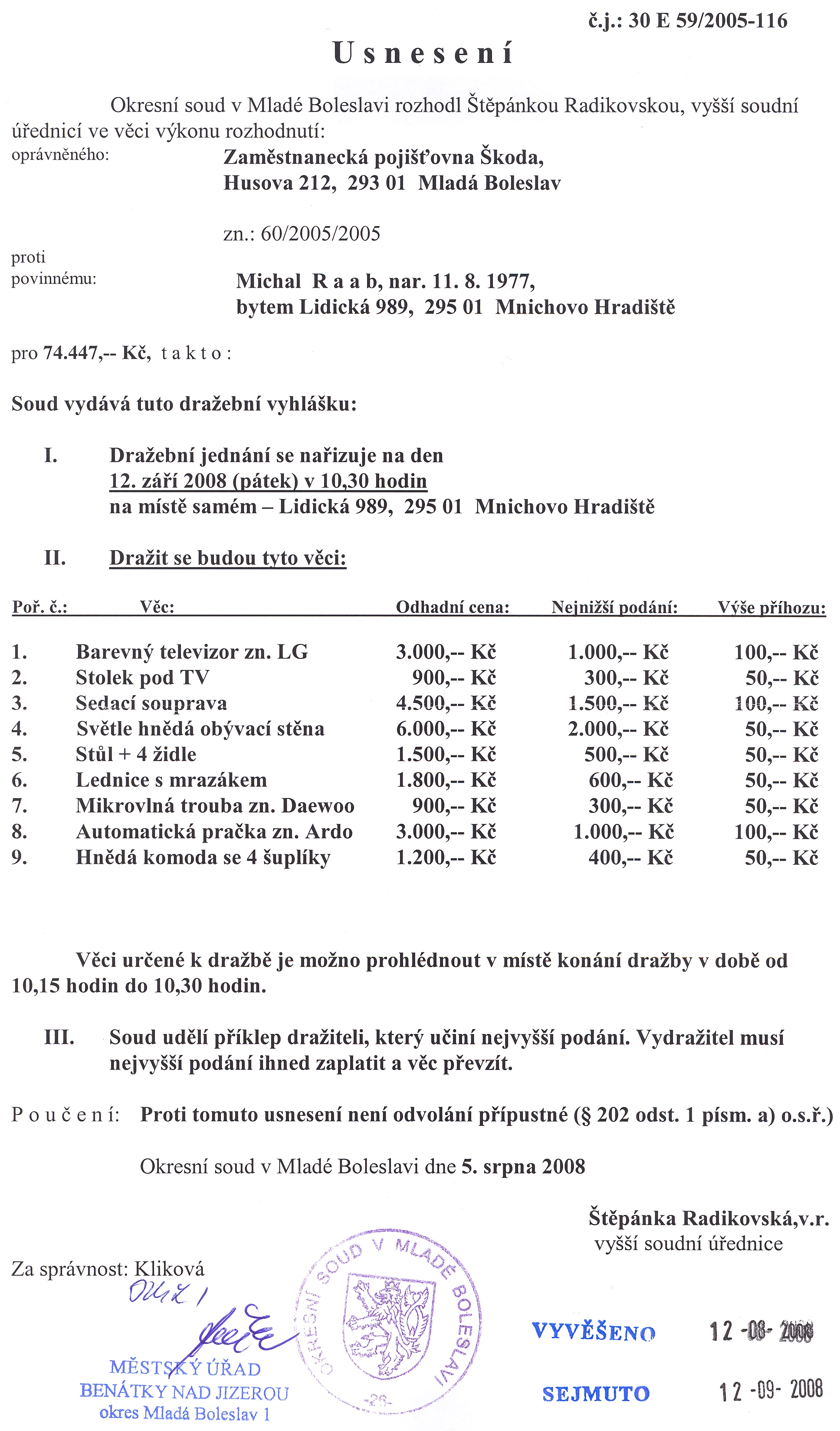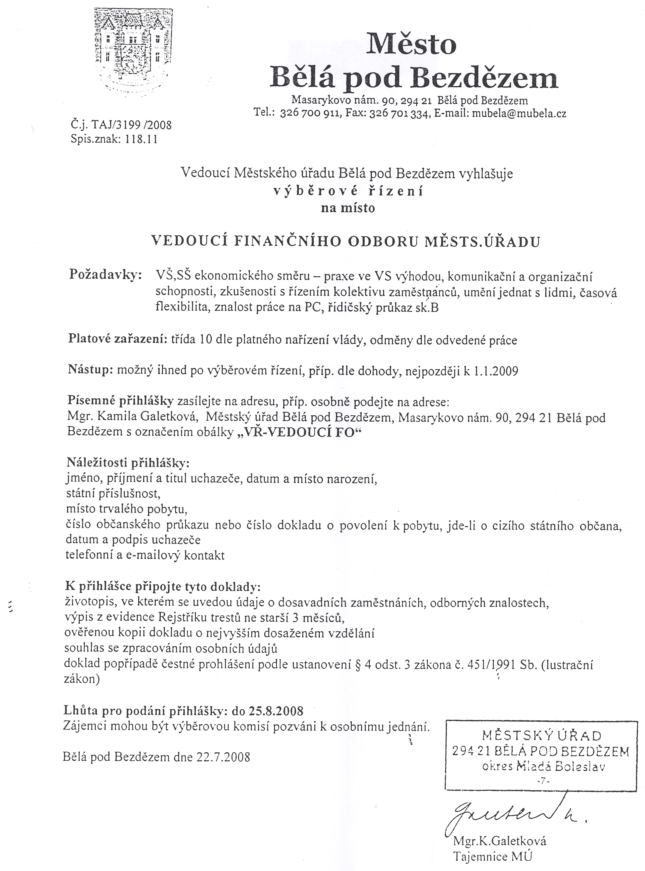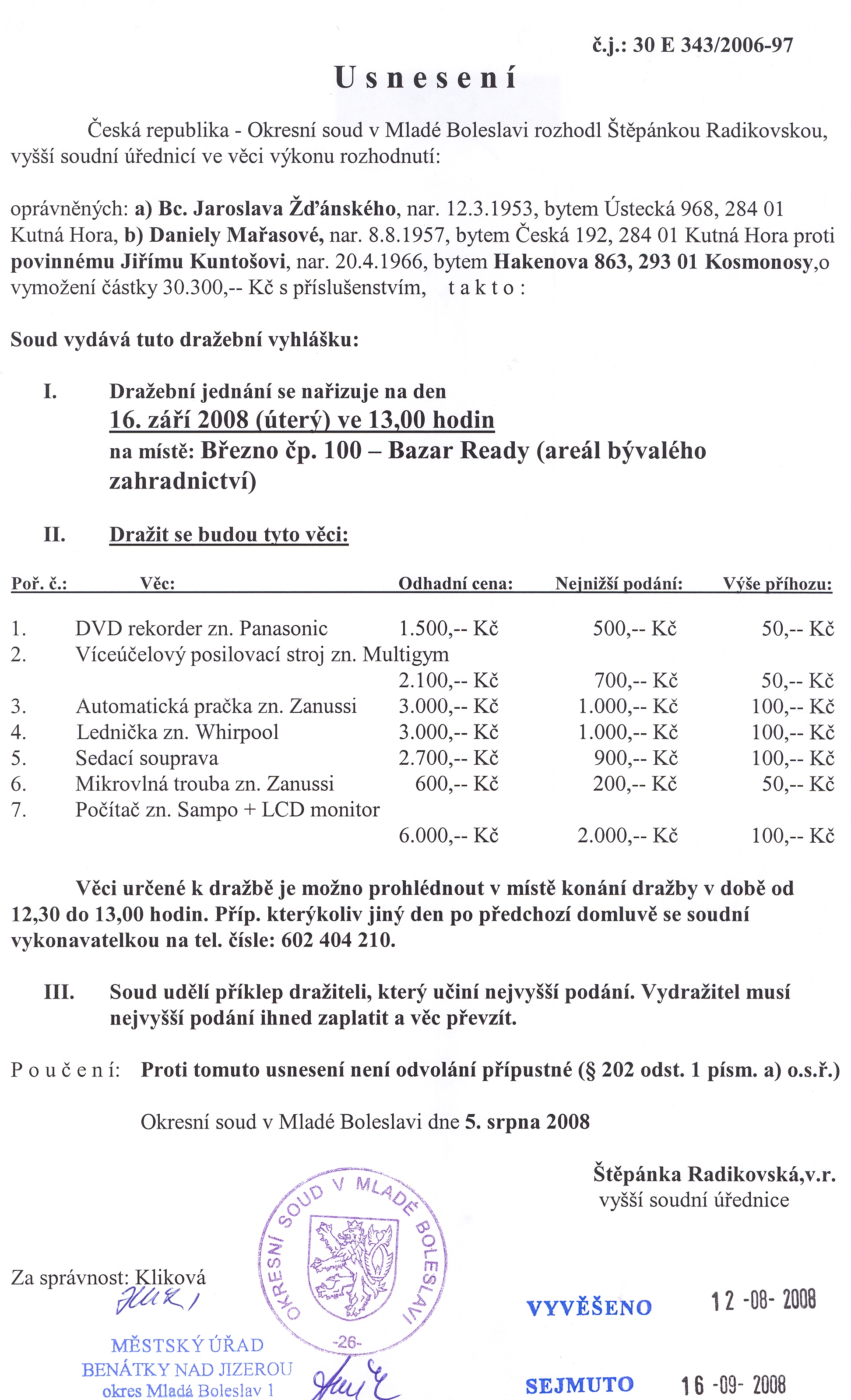 Vyvěšení: 12.8.2008 Sejmutí: 28.8.2008