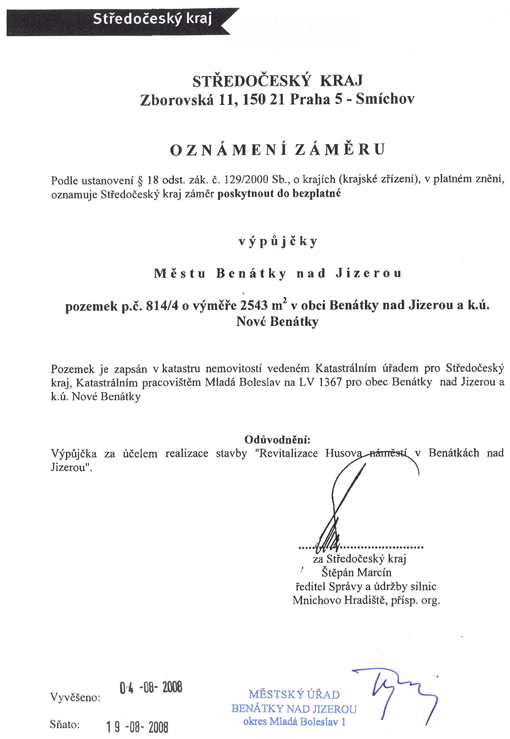 Vyvěšení: 04.8.2008 Sejmutí: 19.8.2008