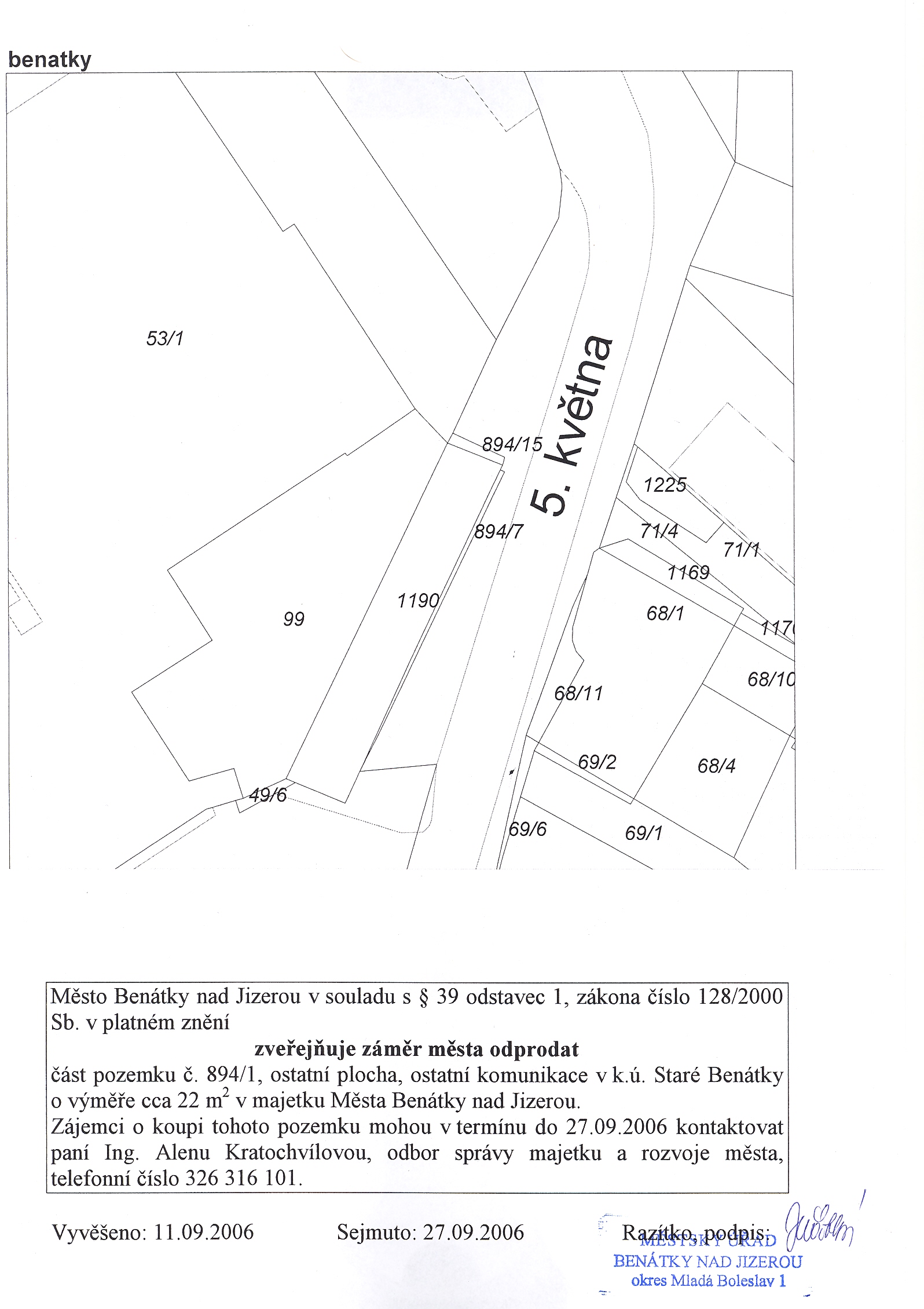 Vyvěšení: 11.9.2006 Sejmutí: 27.9.2006