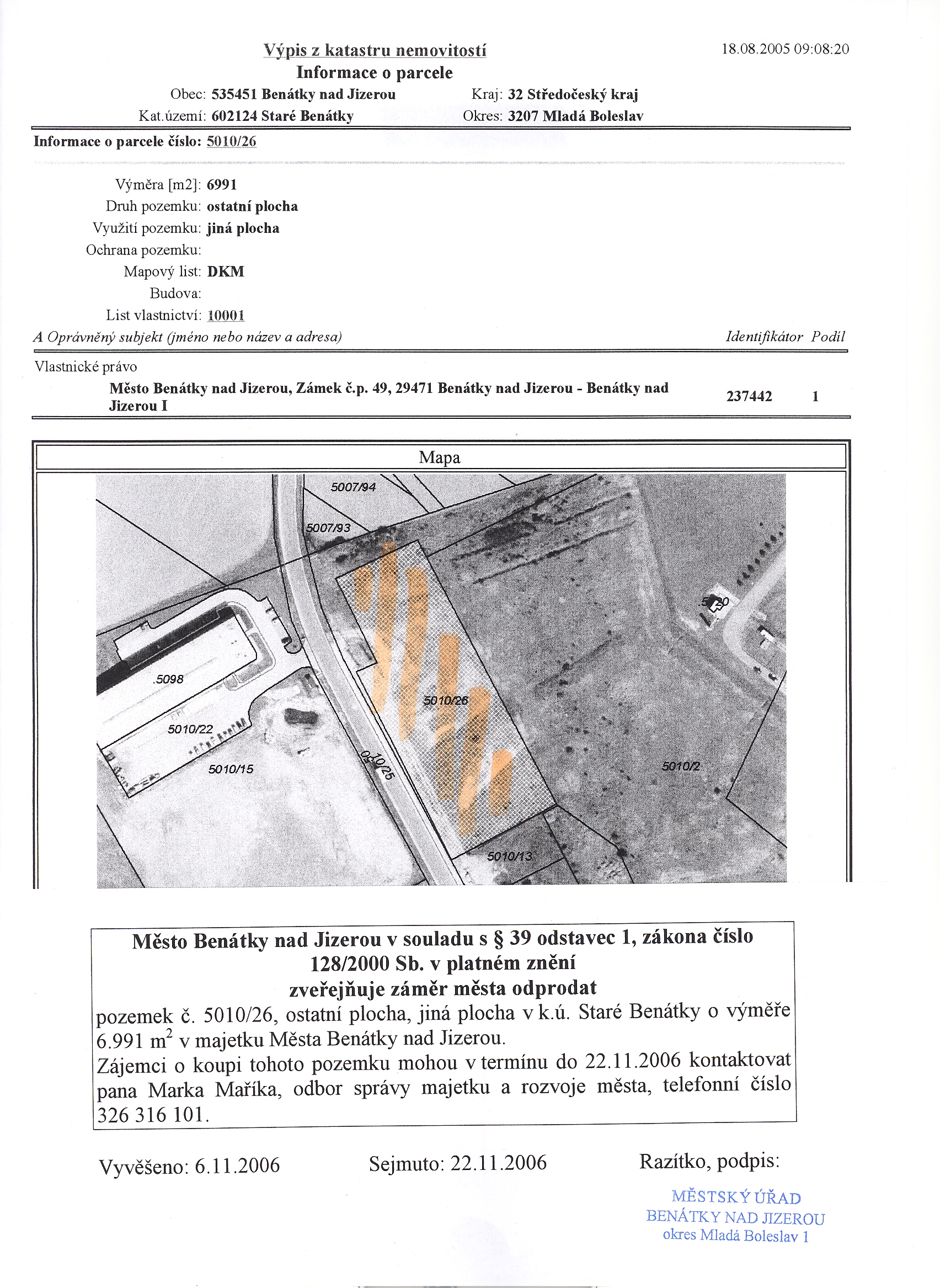 Vyvěšení: 16.10.2006 Sejmutí: 16.11.2006