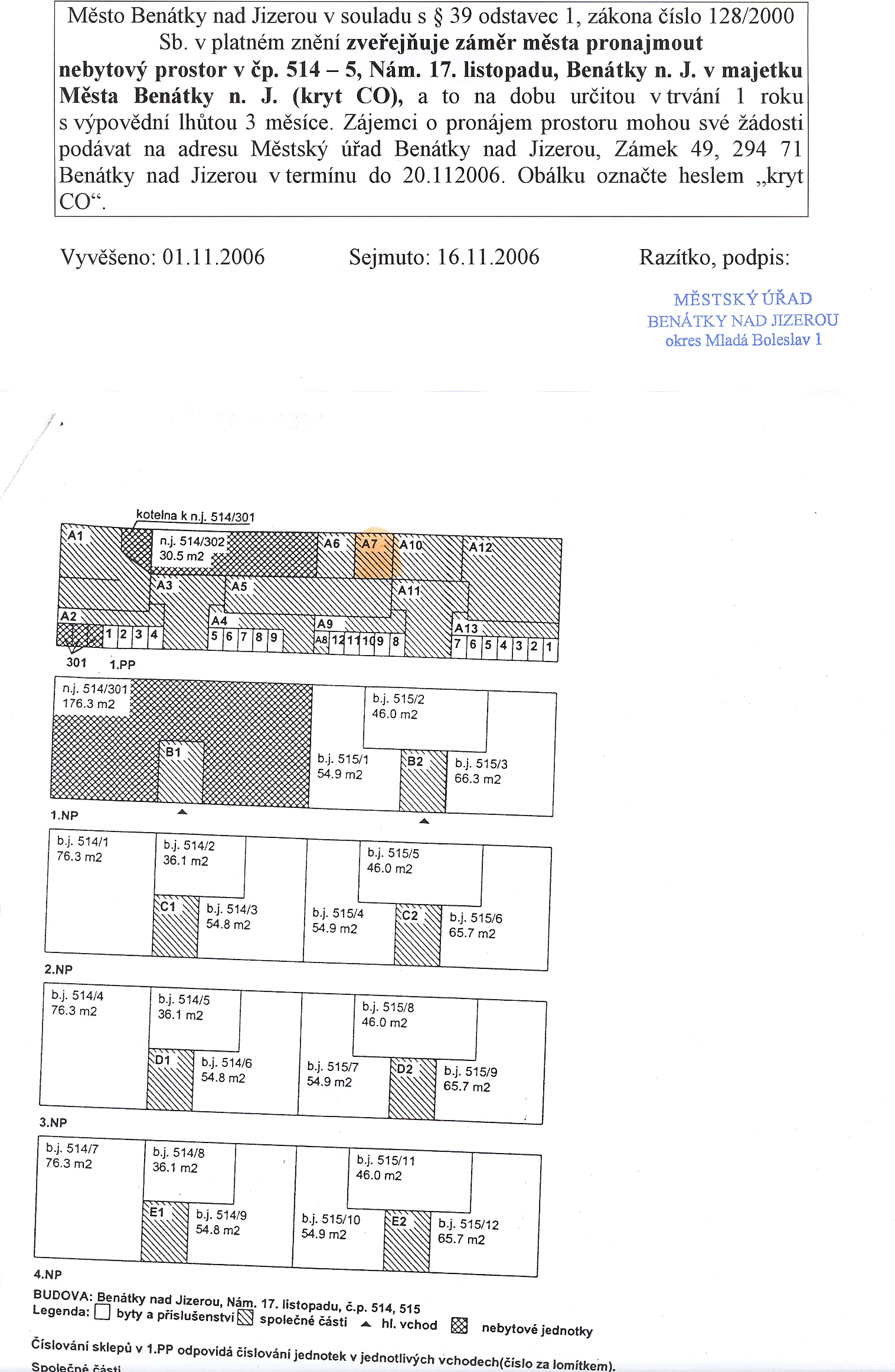 Vyvěšení: 30.10.2006 Sejmutí: 16.11.2006