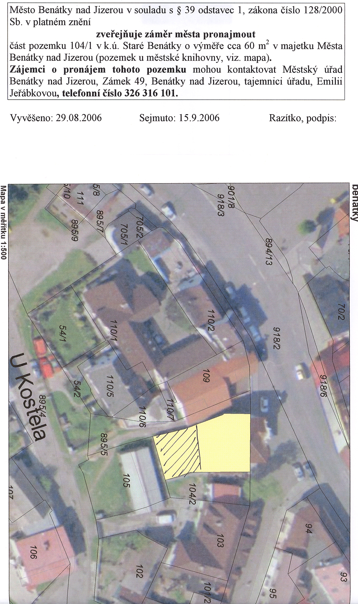 Městský úřad Benátky nad Jizerou, Zámek 49, 294 71 Benátky nad Jizerou Přehled zveřejněných písemností za rok 2006