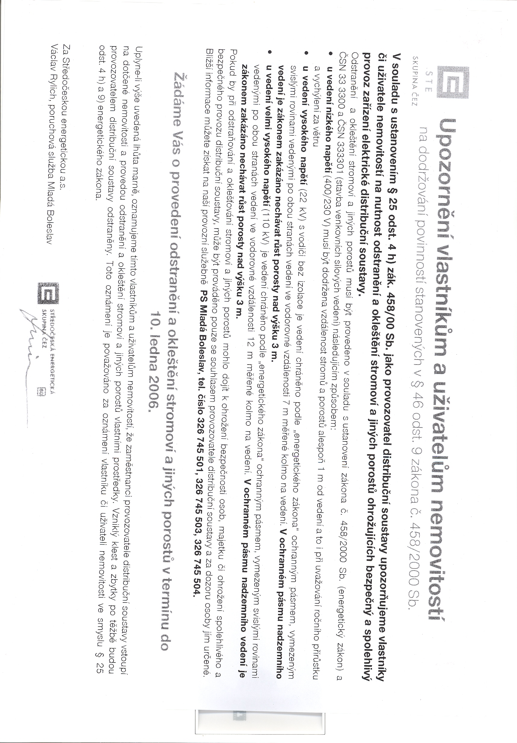 Středočeská energetická, Mladá Boleslav Upozornění
