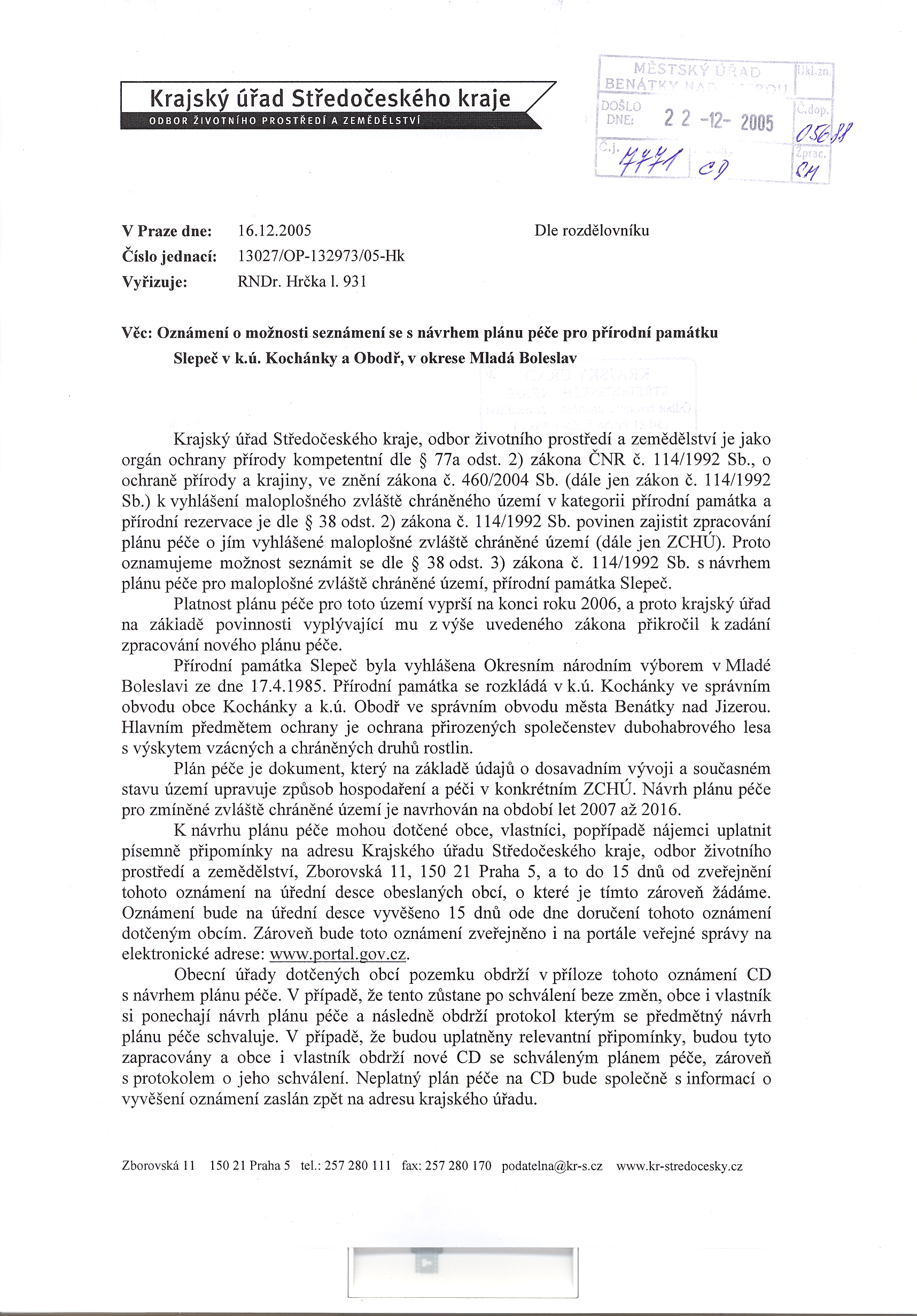 Krajský úřad Středočeského kraje Oznámení