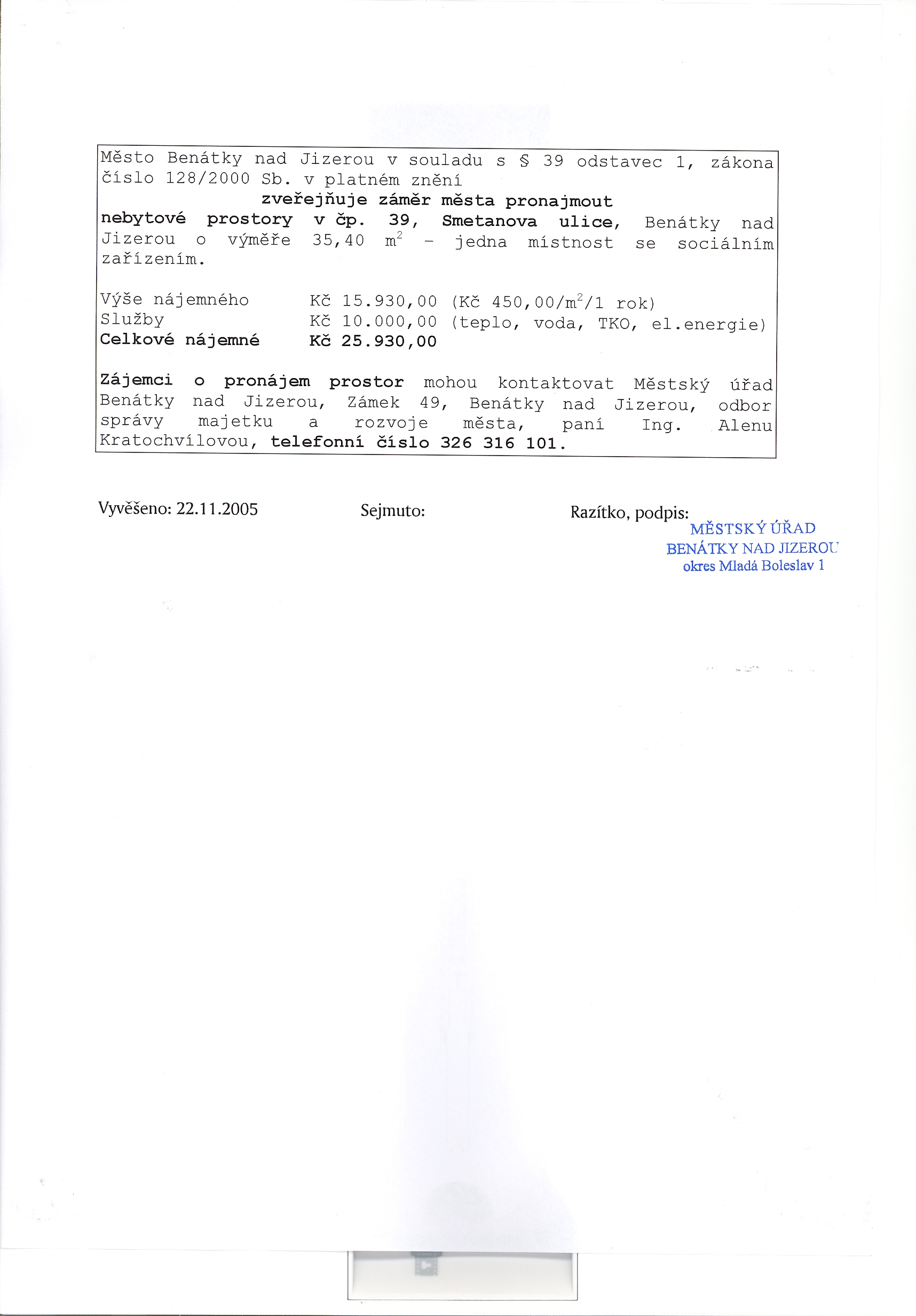 Vyvěšení: 01.1.2005 Sejmutí: 30.12.2005