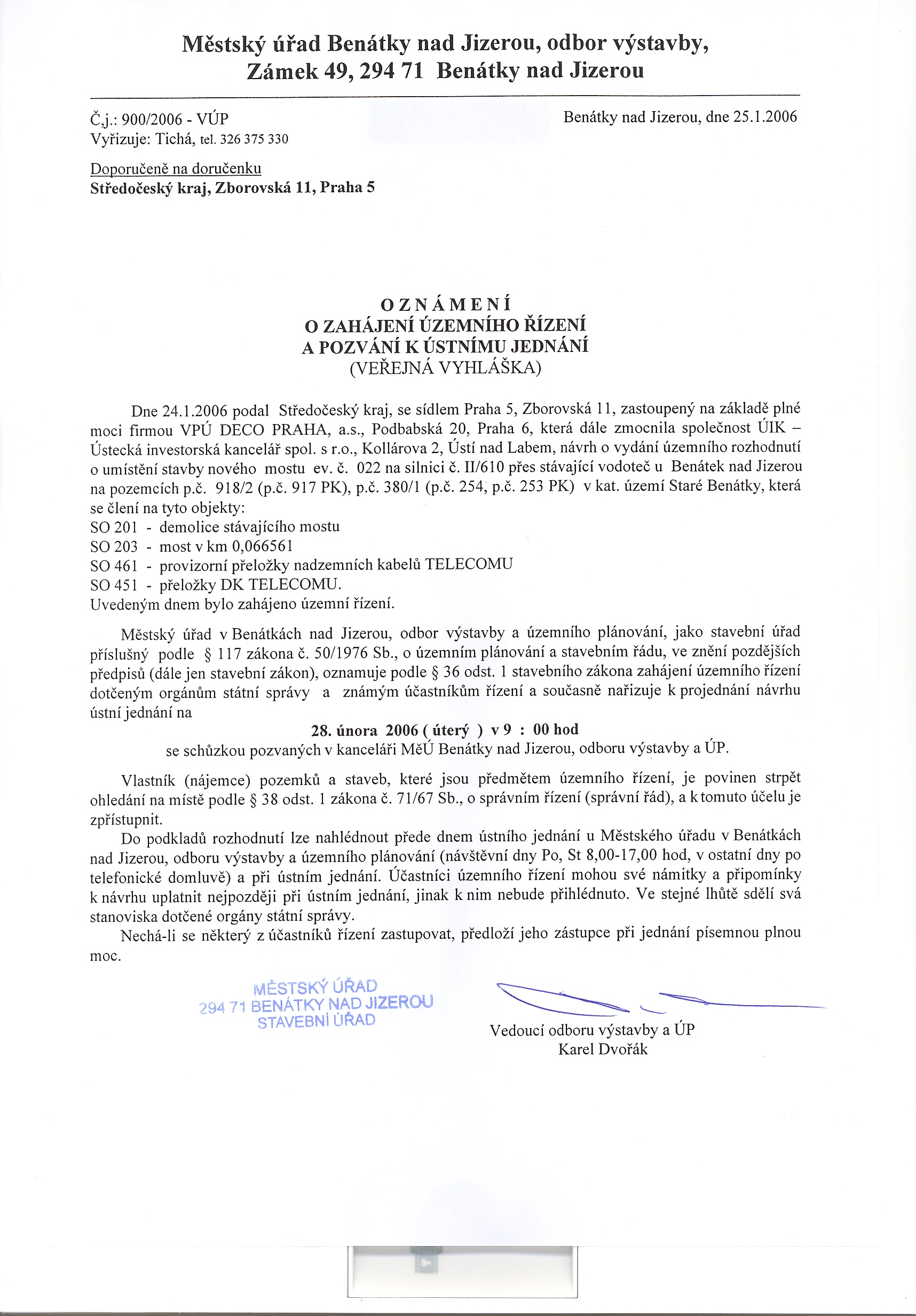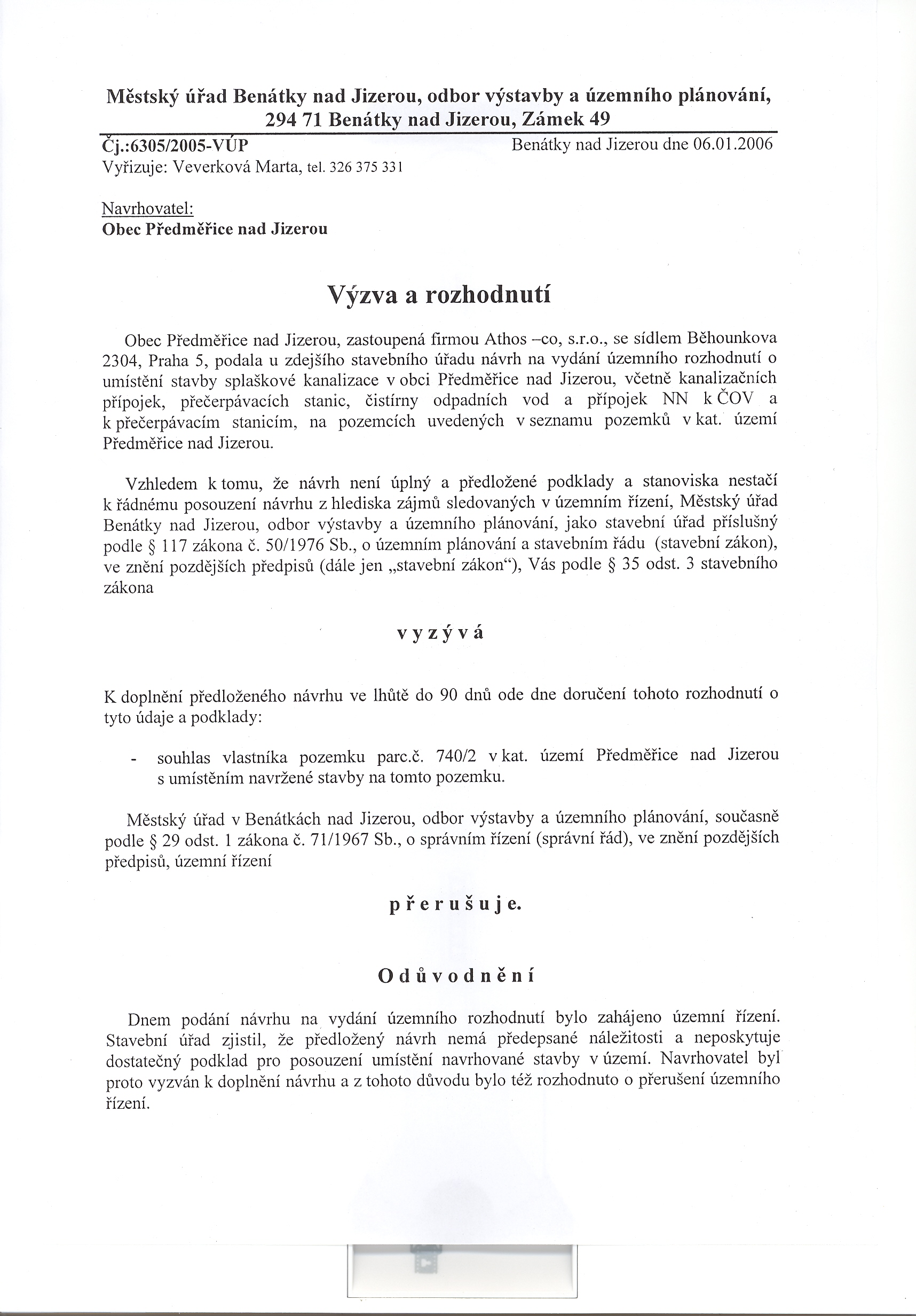 Stavební úřad, Benátky nad Jizerou Výzva a rozhodnutí
